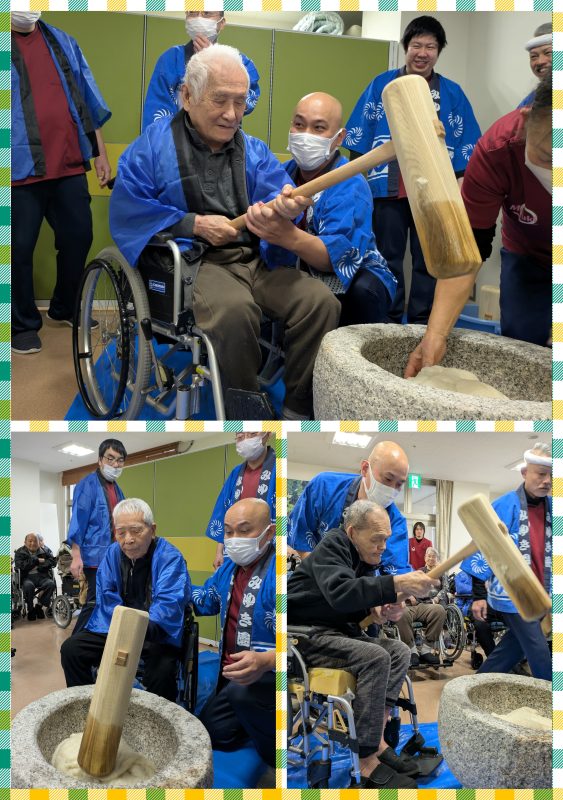 職員がもちをついた後、希望される方にもついていただき、楽しそうなご様子でした🎶